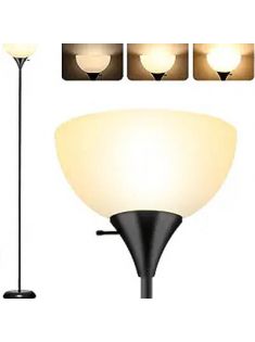 Standing Lamp, Led Floor Lamp with 3 Levels Dimmable Brightness, Drop-Resistant White Lampshade, Rotary Switch, Industrial Metal Floor Lamp for Living Room Bedroom Study Office Kid’s Room
