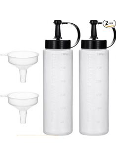 2 Pack 10oz Plastic Squeeze Squirt Condiment Bottles with Cap Lids and Funnel - top dispensers for ketchup mustard mayo hot sauces olive oil
