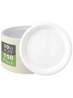 Vplus 150 Pack Compostable Disposable Paper Plates 10.25 inch Super Strong Paper Plates 100% Bagasse Natural Biodegradable Eco-Friendly Sugarcane Plates(white)