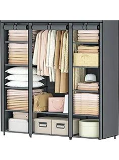 BALEINE Wardrobe Closet, Portable Closet Dresser for Bedroom, Clothes Storage Organizer with 12 Compartments 55" x 16" x 65", Non-Woven Fabric Storage Closet for Bedroom and Dorm (Grey)