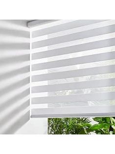 Persilux Cordless Zebra Blinds for Windows Free-Stop Roller Windows Shades (24" W X 72" H, White) Dual Layer Light Control for Day and Night, Light Filtering Sheer Shades for Home, Easy to Install