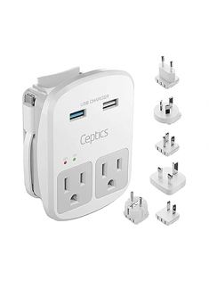 QC 3.0 2 USB + 2 US Outlets, Surge Protection, Plugs for Europe, UK, China, Australia, Japan - Perfect for Laptop, Cell Phones, Cameras - Safe ETL Tested