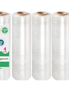 PackageZoom Pre Stretched 15” x 1500 ft 4 Rolls Stretch Wrap Film Clear Cling Plastic for Moving and Packaging Stretch Wrap