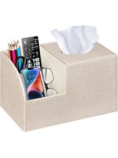 PU Leather Square Tissue Box Cover - Multi-Functional Tissue Box Holder, Tissue Box Cover with Storage,Tissue and Remote Control Holder, Cube Tissue Box Organizer Bedroom Nightstand End Table