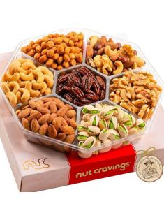 Nut Cravings Gourmet Collection - Easter Mixed Nuts Gift Basket in Red Gold Box (7 Assortments, 1 LB) Purim Mishloach Manot, Arrangement Platter, Birthday Care Package - Healthy Kosher USA Made
