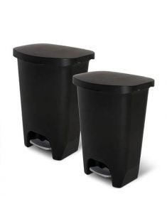 Glad 13 Gallon Trash Can, 2 Pack | Plastic Kitchen Waste Bin with Odor Protection of Lid | Hands Free with Step On Foot Pedal and Garbage Bag Rings, Black, 2 Count