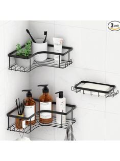 LiviNGPAi Corner Shower Caddy, 3 Pack, Stainless Steel, 40lb Load Capacity, No Drilling Required, Ideal for Bathrooms
