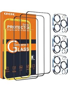 QHOHQ for iPhone 16 Pro Screen Protector with Camera Lens Protector, [Military Grade Shatterproof], Top 9H+ Tempered Glass, Full Edge Coverage, Ultra Durable, with Easy Installation Tool [3+3 Pack]