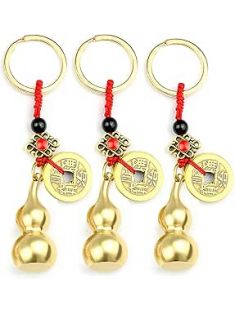 QTMY 3 Pack Chinese Feng Shui Gourd Brass Wu Lou Keychains Feng Shui Coins Calabash Decorations Pendant Key Rings for Good Luck Fortune Longevity Wealth Success
