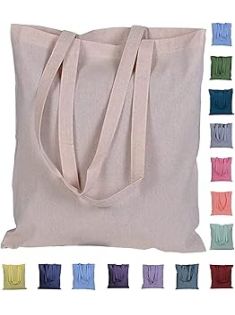 ATMOS GREEN 20 COLORS | 5 | 12 | 20 | 50 | 100 | 200 Pack 15 X 16 Inch NATURAL color Recycled Cotton tote bags eco friendly super strong great choice for schools promotion MADE in INDIA (5 Pack)