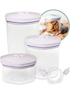 Avid Armor 3 Piece Vacuum Food Container Set for Home Kitchen with Accessory Hose in 2L, 1.4L, and 0.7L Sizes BPA Free