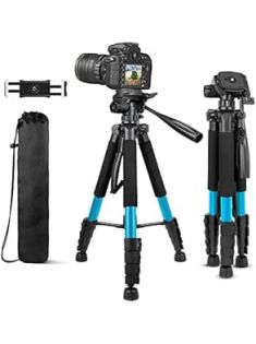 Aureday 74’’ Camera Tripod with Travel Bag,Cell Phone Tripod with Wireless Remote and Phone Holder, Compatible with DSLR Cameras,Cell Phones,Projector,Webcam,Spotting Scopes(Blue)