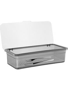 Cabilock Flatware Tray with Lid, Kitchen Cutlery Tray and Utensil Drawer Organizer, Silverware Countertop Storage Container with Cover 10 * 2.8 * 3.9 inches