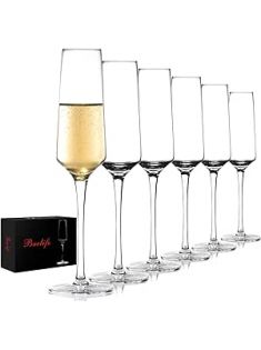 Champagne Flutes - Hand Blown Elegant Champagne Glasses Set of 6 - Unique Gift for Birthday,Wedding, Anniversary - Ideal for Wine Tasting,Daily Use - 7.5 oz, Clear