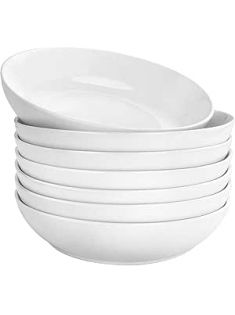 DeeCoo 7 Pack Porcelain Pasta Bowls Ceramic , Large Serving Bowl, Wide and Shallow, Set 8.3 Inch - 30 Ounce - for Pasta, Salad, Cereal, Soup & Microwave & Dishwasher Safe