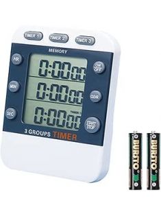 Digital Dual Kitchen Timer, 3 Channels Count UP/Down Timer, Triple Cooking Timer, Large Display, Loud Volume Alarm with Magnetic Back, Stand, Battery Included (M382)