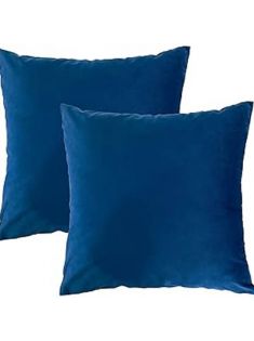 RELY+ Pack of 2 Throw Pillow Covers 18x18 inch, Velvet, Soft, Cozy, Solid, Decorative Pillow Covers, Luxury Cushion Case for Sofa, Couch, Bedroom, Living Room - Blue