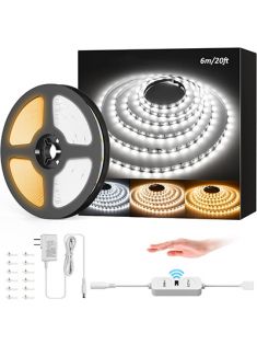 NOVOSTELLA 20ft Hand Wave Activated Tunable White LED Strip Light, 672 LEDs, Dimmable 3000K-6500K 24V Touchless Under Cabinet Lighting, Daylight Warm Cool White Tape Light for Kitchen Bedroom Mirror