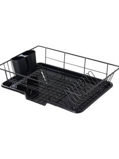 Space-Saving 3-Piece Dish Drainer Rack Set with Cutlery Holder - Maximize Countertop Space, Black