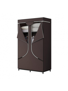 Portable Wardrobe Closet Clothing Organizer with Dustproof Non-Woven Fabric 34 Inch Clothes Hanging Rack for Bedroom (34 Inch, Coffee)
