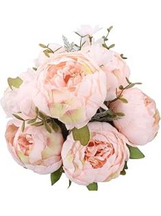 Duovlo Springs Flowers Artificial Silk Peony Bouquets Wedding Home Decoration,Pack of 1 (Spring Pure Pink)