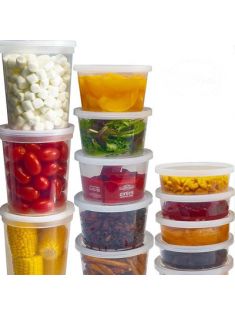 DuraHome Food Storage Containers with Lids 8oz, 16oz, 32oz Freezer Deli Cups Combo Pack, 44 Sets BPA-Free Leakproof Round Clear Takeout Container Meal Prep Microwavable, Airtight Lids