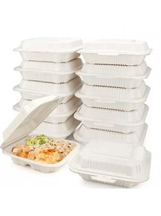 Eco Friendly 3 Compartment 100 Count 8"x8" To Go Food Containers - To Go Containers Disposable, Take Out Food Containers, To Go Boxes for Food, Clamshell Food Container, Heavy Duty To Go Box
