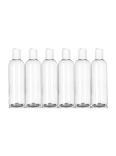 Clear Plastic Empty Bottles with White Disc Top Caps, Refillable Containers for Shampoo, Lotions, Cream and More Pack of 6, BPA Free