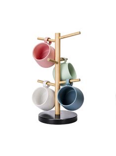 Bamboo Mug Holder Tree, Thicker Base Coffee Cup Holder Stand for Counter, Mug Rack with 6 Hooks