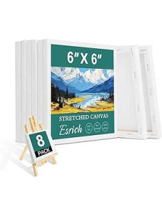 ESRICH Small Stretched Canvas for Painting 6x6 inch, 2/5''Profile Art Primed 8 Pack Canvases for Painting, Cotton Small Professional Blank Paint Canvas for Kids and Art Supplies, for Acrylics, Oils.