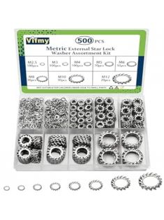 External Tooth Lock Washers Assortment Kit(500 Pack),M2.5 M3 M4 M5 M6 M8 M10 M12 Metric 304 Stainless Steel External Star Washer Sets