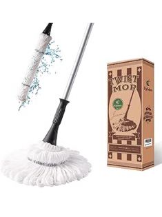 Eyliden Mop with 2 Reusable Heads, Easy Wringing Twist Mop, with 57.5 inch Long Handle, Wet Mops for Floor Cleaning, Commercial Household Clean Hardwood, Vinyl, Tile, and More
