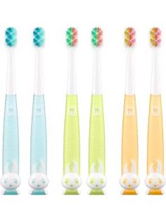 Fregum 7001 Extra Soft Toddler Toothbrush, Kids Tooth Brush for Children Ages 2+, Cute Buuny Design, Small Head, 6 Count