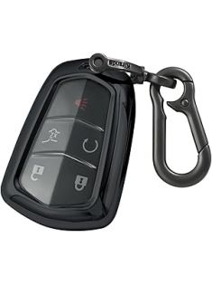 for Cadillac Key fob Cover case Keychain,Soft TPU Key case,Skin,5-6 Buttons Compatible with CT6 XT5 CTS XTS SRX ATS STS Remote Key Vehicle Accessories(Transparent Black)