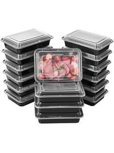 FULING 50 Pack Meal Prep Plastic Food Storage Containers With Lids 28 oz 1 Compartment Black Rectangular Reusable To Go Lunch Prepping Boxes BPA-Free Microwavable Freezer Dishwasher Safe Stackable