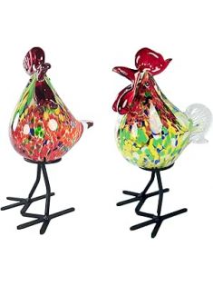 Glass Rooster Figurine, Blown Glass Roosters for Kitchen Decor, 2 Pcs Art Glass Roosters and Hens, Red