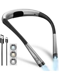 Glocusent Book Light, 3-Color & 6-Brightness Reading Light, Bendable Neck Light, 80-hr Lasting Rechargeable Lamp, Perfect Book Light for Reading in Bed, Knitting, Camping, Repairing, Book Lovers Gifts
