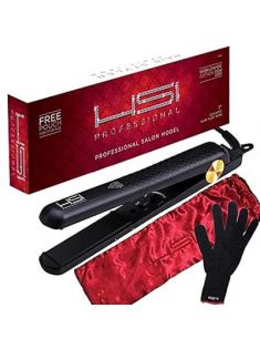 HSI Professional Ceramic Tourmaline Ionic Flat Iron Hair Straightener with Glove, Pouch and Travel Size Argan Oil Leave in Hair Treatment