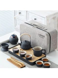 LURRIER Gongfu tea sets, Portable Ceramic TeaSet, Asian Tea sets for adult, Tea Gift sets, Grey leather case, Portable Travel Bag,Home,Gifting,Outdoor and Office(13 Pieces,Black)