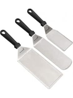 Griddle Spatula Set - Stainless Steel Metal Spatula and Griddle Scraper - Heavy Spatula Griddle Accessories Great for Cast Iron Griddle BBQ Flat Top Grill - Commercial Grade