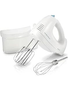 Hamilton Beach 6-Speed Electric Hand Mixer with Whisk, Traditional Beaters, Snap-On Storage Case, 250 Watts, White