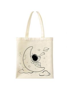 Yancorp Canvas Tote Bag With Inner Zipper Pocket Handles 12OZ for Women Cute Aesthetic Beach Tote Bag Reusable Cat Tote Bag (Astronaut)