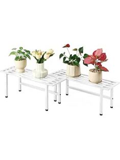 2 Pack Metal Plant Stand Outdoor Plant Shelf Indoor,1 Tier Heavy Duty Plant Stands for Multiple Plants,26" L x 10.12" H x 8.75" W,White