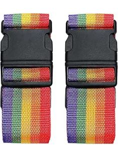 2 Pack Suitcase Belts, Adjustable Luggage Straps, Bright Colors Travel Packing Straps with Quick Release Buckle (Rainbow)