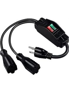 2 Way Extension Cord with On/Off Switch 3 Prong Outdoor Extension Cord Splitter, Heavy Duty Extension Cord with SJTW 14AWG 15A/125V and 18AWG 10A/125V(1.6 Ft, Black)