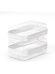 2 Pack Clear Hard Shell Zipper Case, BIiss Plastic Bins for Organizing, Clear Zipper Pouches Makeup Case & Travel Bags for Storage Cosmetics, Puzzles, 7 x 4.3 x 2.4 Inch (White)