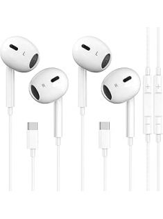 2 Packs USB C Headphones for iPhone 16/15 Earbuds with Microphone & Volume Control HiFi Stereo Type C Earphones for Galaxy S23/S22/S21/S20/Ultra Note 10/20, for iPad Pro Pixel 7/6/6a/5/4 and More