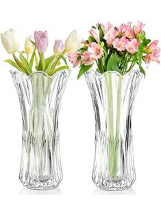 2 Pack Glass Flower Vase, 9.5 Inch Large Thickened Clear Vase, Phoenix Tail Shape Floral Vase, Decorative Modern Plant Vase for Centerpieces, Home Decor, Wedding, Party, Office