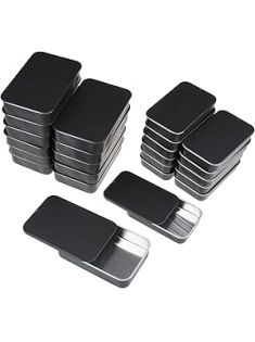 24-Pack Slide Top Rectangular Metal Tin Containers for Candies Jewelry Crafts Pills Lip Balm Storage Survival Kit, Mixed Sizes (Black)
