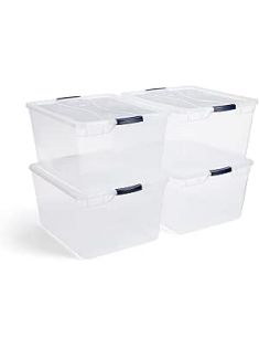 Rubbermaid Cleverstore 74 Qt Clear Storage Bins with Latching Lids, 4-Pack, Stackable, BPA-Free, Made in USA